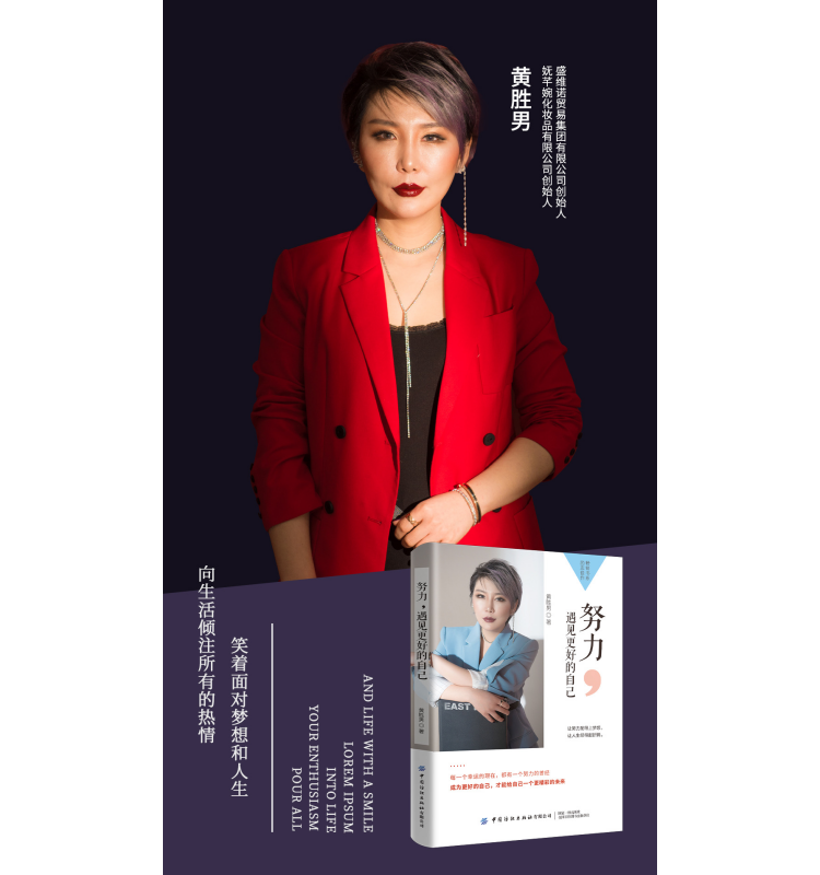 畅销书作者黄胜男老师出版书籍《努力,遇见更好的自己》,这本书告诉大家,未来只属于真正的强者,一个人,只有确立了前进的目标他才会最大可能地发挥自己的潜力。