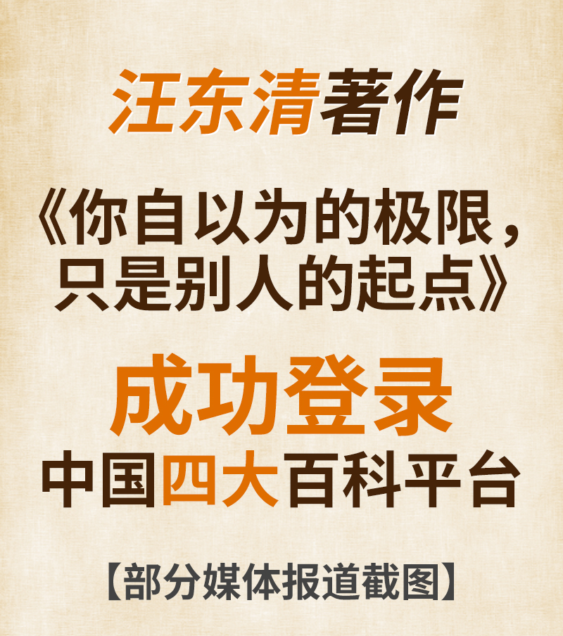 广州权盛生物科技有限公司创始人汪东清老师著作《你自以为的极限,只是别人的起点》上架中国4大百科平台,品牌IP影响力得到了进一步的提升,同时也扩大了个人的知名度。