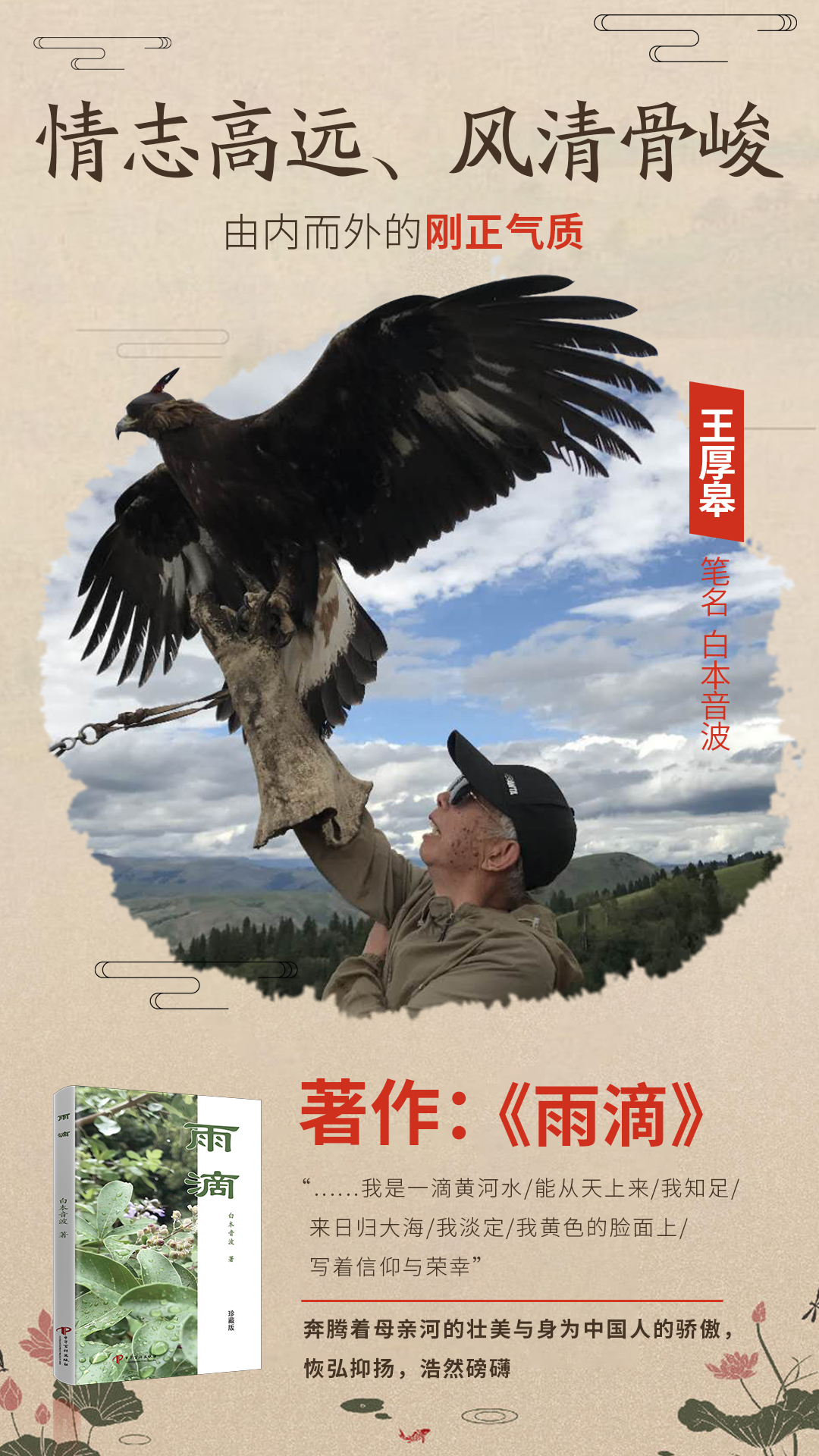 诗集著作《雨滴》,凝聚着王厚皋老师这些年来对待生命、生活、亲人以及家人的真挚爱意,同样也体现着他对家国、家人、家庭以及家乡等的浓厚的情谊。更传递着王先生那份家国情怀与人文侠骨的柔情。