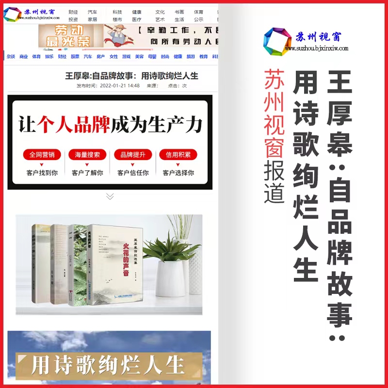苏州视窗报道:江苏省特级教育工作者【王厚皋】老师——自品牌故事:用诗歌绚烂人生!自品牌故事让个人品牌成为生产力,全网营销个人信息、海量搜索个人信息、个人品牌提升、个人信用积累。