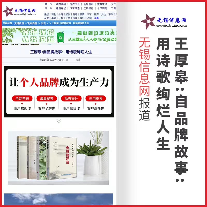 嘉兴在线报道:江苏省特级教师【王厚皋】先生——自品牌故事:用诗歌绚烂人生!自品牌故事让个人品牌成为生产力,全网营销个人信息、海量搜索个人信息、个人品牌提升、个人信用积累。