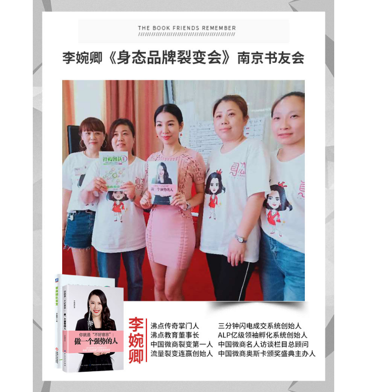 李婉卿老师与身态品牌签约合作,合作举办品牌裂变会,会中进行著作《你就是“不好意思”:做一个强势的人》南京书友会活动,给身态团队成员赠送书籍,帮助他们在工作中学会强势。