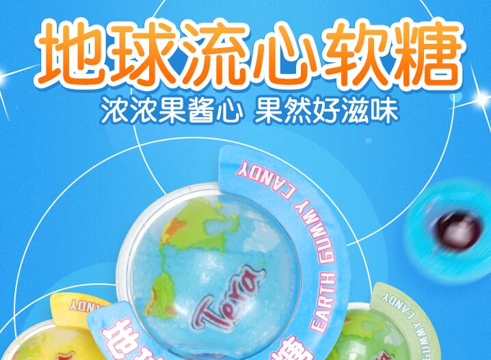 地球流心软糖,浓浓果酱心,果然好滋味,多种口味,这酸爽无法想象,果汁软糖,一咬Q糖,果汁芬香,爆浆夹心,酸爽十足,仿真地球,好吃好玩趣味满满,每一个独立小包装。