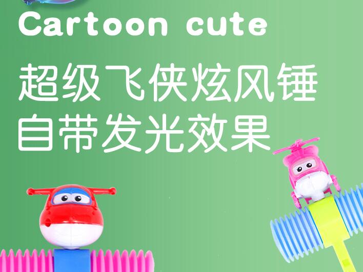 超级飞侠旋风锤,自带发光效果,卡通趣萌造型,匹配孩子童真,搭配可爱色系,满足不同个性的宝宝,手感光滑无毛刺,内置水果糖,敲打的会发出响声,还带有发光的效果。