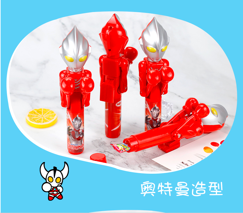 奥特曼战甲,跳跳糖拳击手,不仅能吃,还能拳击,奥特曼造型,拳击手臂,还有一个按钮,按压即可出拳,打开下方盖子,还有一包跳跳糖,玩的同时,也可以刺激你的味蕾。
