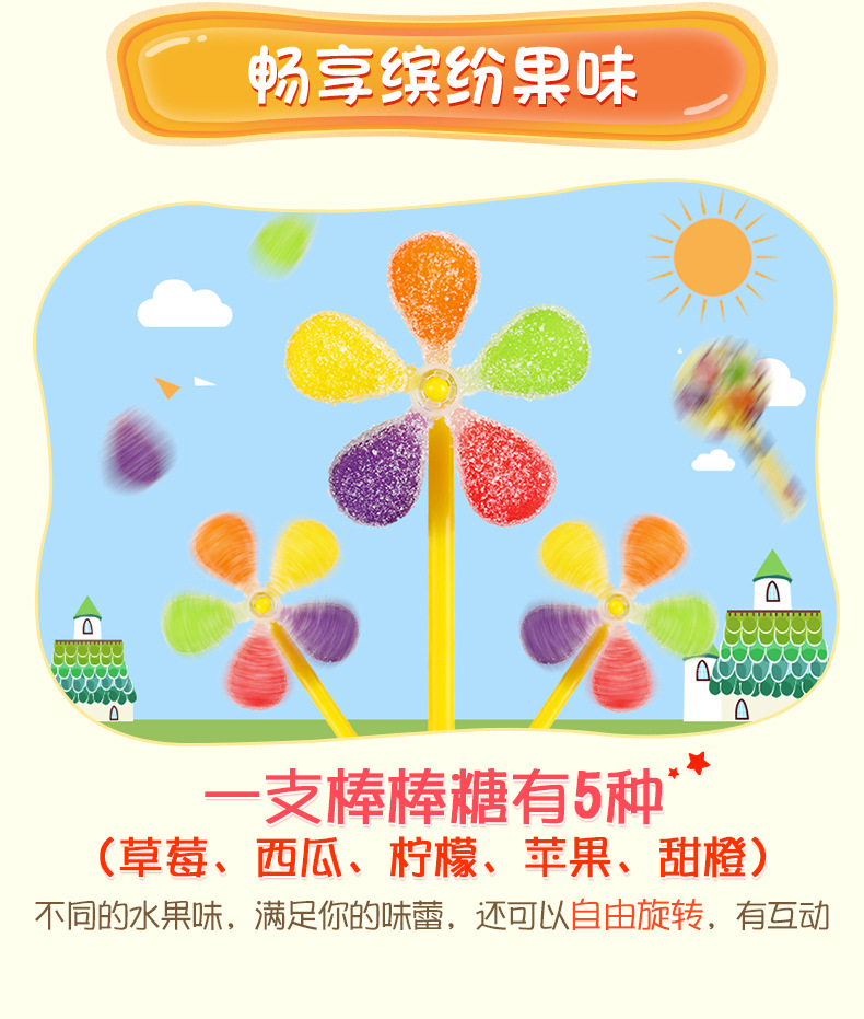 快乐风车糖,你的启蒙专家,快乐的童年玩伴,回不去的童年记忆,上等的PV塑料制作,优质可食用糖果,精致的风车造型,快乐风车糖,不仅可以吃,还可以拿来玩耍。