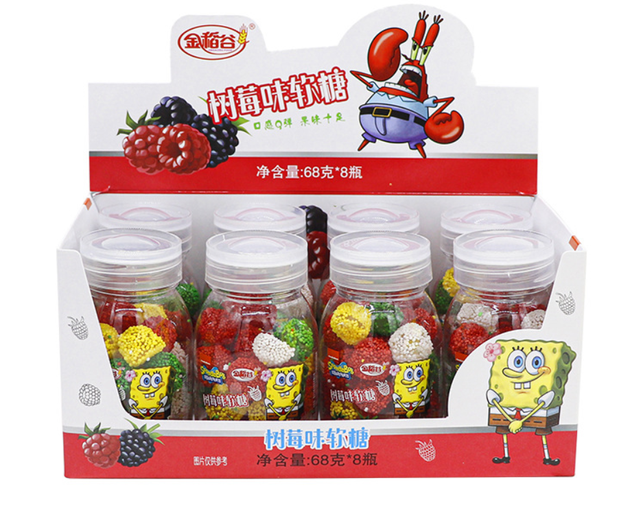 金稻谷树莓味软糖,快乐树莓软糖,80.90年代的人都吃过,奔跑在风里,给自己的童年增添一笔欢乐的心情,缤纷的色彩,美味的甜蜜,珍珠形状的棒棒软糖,给你不一样的童年。