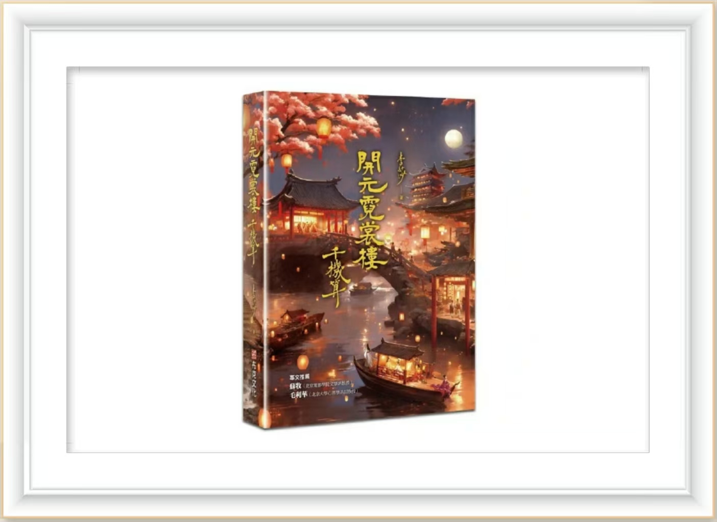 在2025台北书展上,《开元霓裳楼・千机算》的展位布置独具匠心。精美的封面设计、醒目的宣传海报,以及展示架上陈列的书籍,吸引了众多读者驻足浏览。