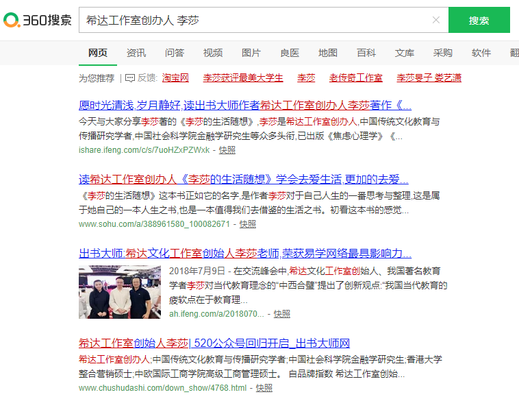 李莎老师的个人品牌网站被360、搜狗、百度成功收录,不仅极大地提升了李莎老师的品牌价值与魅力,有利于宣传品牌,又能够吸引大批流量与优质资源,从而扩大个人影响力。