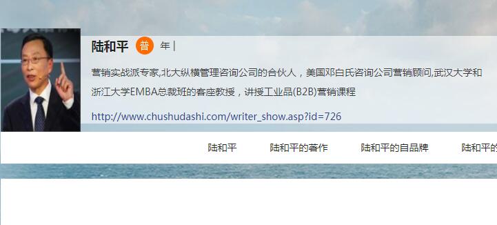 营销实战派专家,北大纵横管理咨询公司的合伙人,美国邓白氏咨询公司营销顾问,武汉大学和浙江大学EMBA总裁班的客座教授,讲授工业品(B2B)营销课程