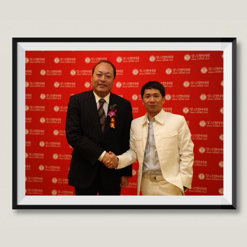 刘景斓老师与——新华联集团董事局主席傅军合影,在一次活动上刘景斓老师遇到了傅军,并在一起聊企业管理、企业培训,十分投机,傅军表示有合作的机会与意愿。