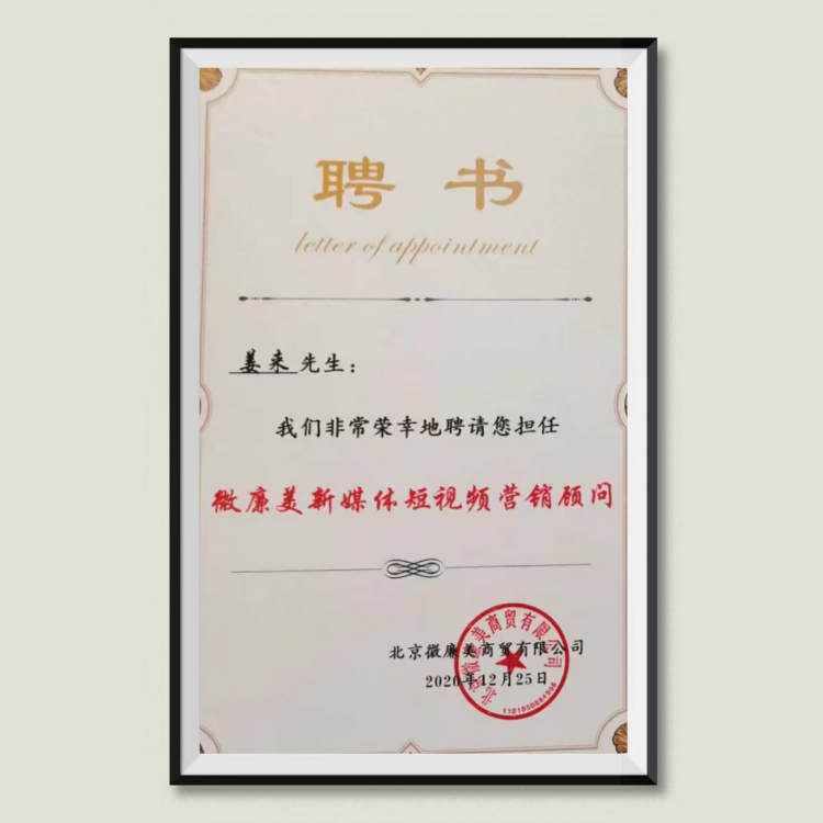 得喜樂联合创始人;姜来传媒CEO;江湖人称短视频小王子;七星运营系统创始股东;知名网红幕后带货操盘手;五行赋全链路赋能体系创始人;多家企业互联网营销策划顾问;