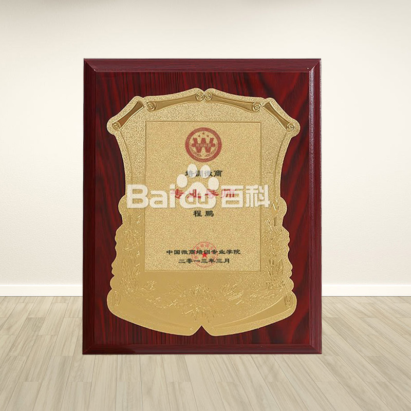 中国人性智慧学终生推动者:程鹏,2016年3月,荣获由中国微商专业学院颁发的——打造微商黄埔军校“发起人”荣誉称号。