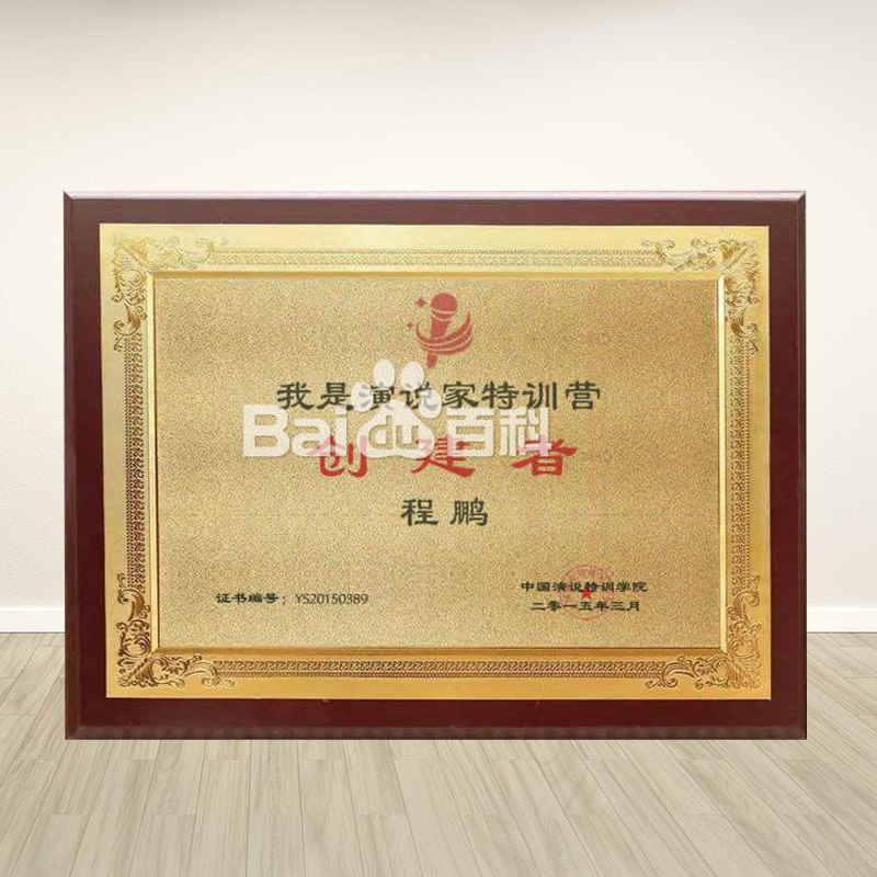 2015年3月,在中国演说特训学院,演说家特训营中,凭借个人领导魅力以及个人决策力,荣获——我是演说家特训营创建者称号。