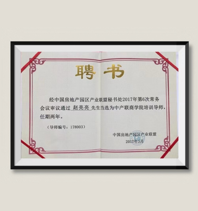 赵亮亮老师荣获由中国房地产园区产业联盟颁发的中产连商学院培训导师聘书,以他在行业里的影响力,改变人们的学习方式,为所有的学习者传道授业,解惑。借助其丰富的经验以及实战能力,教导学习...