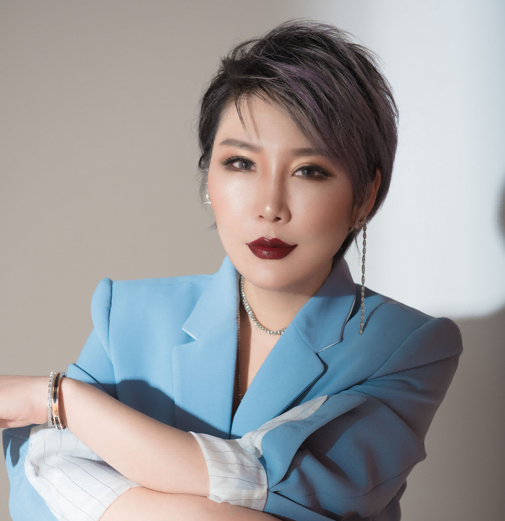 黄胜男老师身着一套优雅的蓝色西装,拍摄了一组个人形象摄影,她的短发被染成了独特的灰色,这抹灰调不仅巧妙地衬托出她沉稳的气质,还带有不随波逐流的时尚态度,使她在人群中独树一帜。
