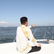 在海边游艇上,齐光伟先生笑容满面,享受着海风拂面的惬意。他身穿休闲装,眺望着远方海天一色的美景。游艇在海面上破浪前行,激起层层浪花,记录下这次难忘的旅游瞬间。