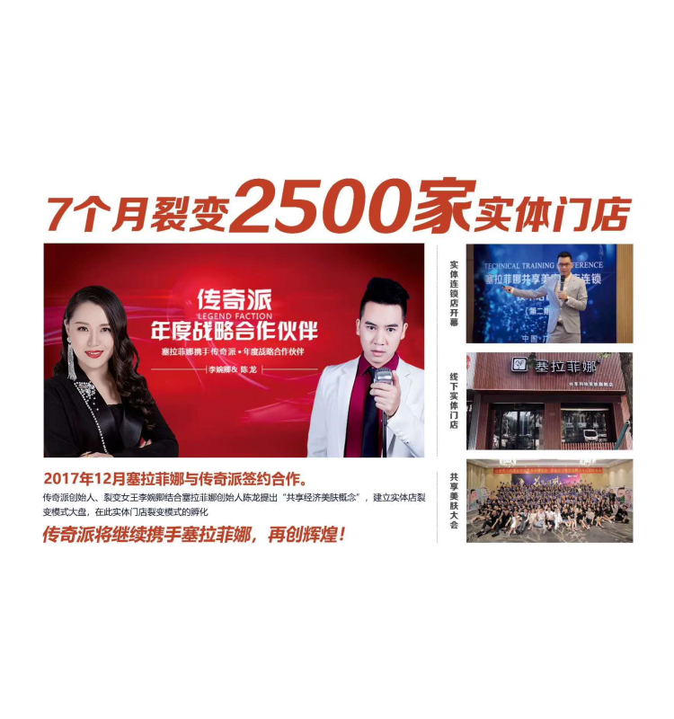 李婉卿老师携手年度战略合作伙伴——塞拉菲娜7个月裂变2500家实体门店,从李婉卿老师与塞拉菲娜陈龙签约合作开始,为其团队的和门店扩张与裂变做出有效孵化。