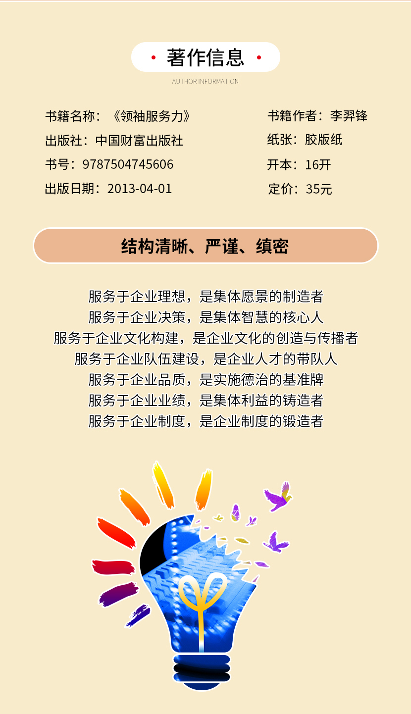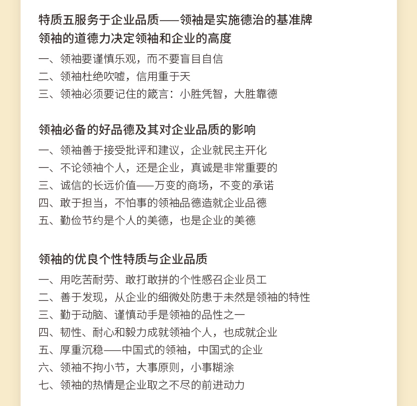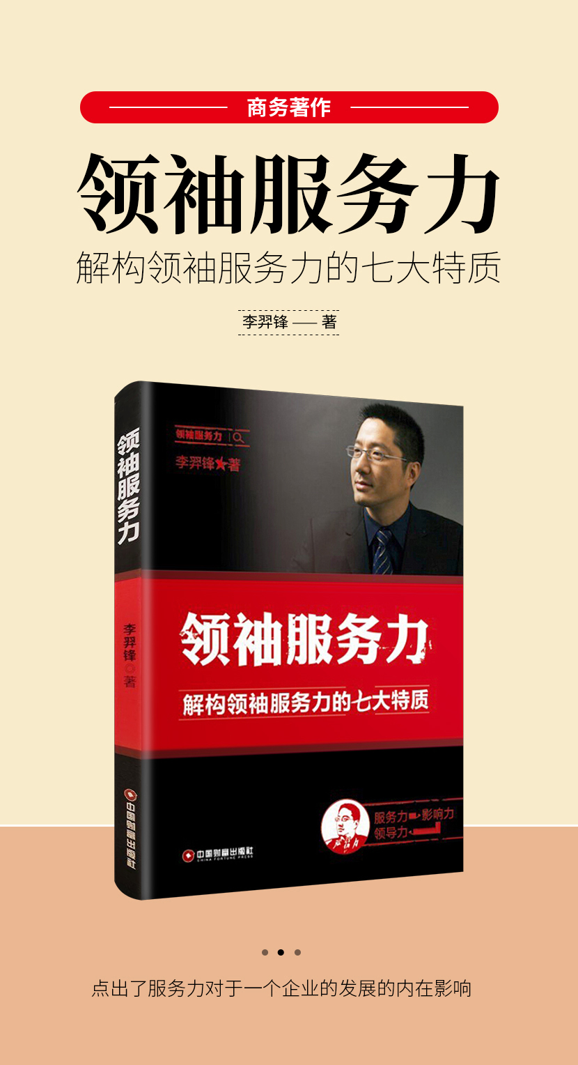 :《领袖服务力》从企业理想、企业决策、企业文化构建、企业队伍建设、企业品质、企业业绩、企业制度等方面点出了服务力对于一个企业的发展的内在影响。