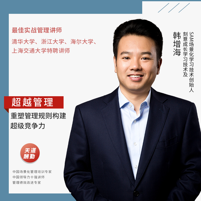 韩增海 中国团队管理培训专家 实战管理专家 学习力提升导师实战管理讲师 中国实战价值的培训专家之一韩增海拥有多年管理与培训经历,同时,对国学应用与西方管理科学也有深入研究。他的著作和培训课程具有很强的系统性与实战性,深受广大企业与学员的欢迎。