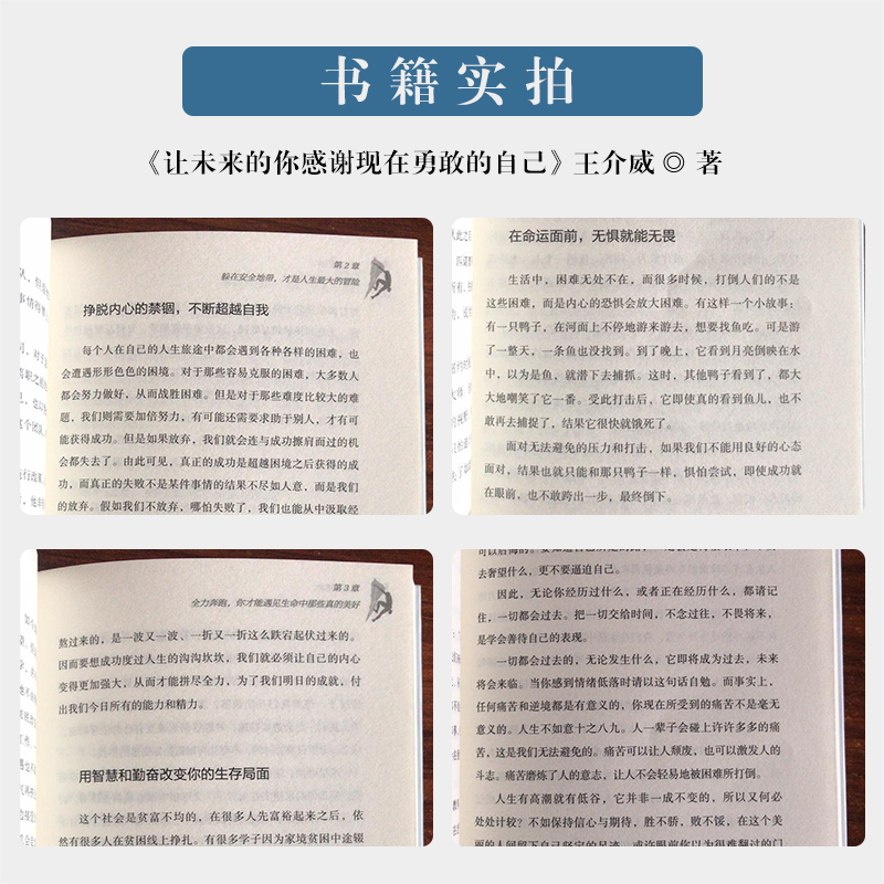 《让未来的你感谢现在勇敢的自己》鼓励人们突破安稳的现状,敢于破釜沉舟,并且告诉人们,唯有敢想敢闯,并且努力再努力,才能成就人生,体会收获的快乐。