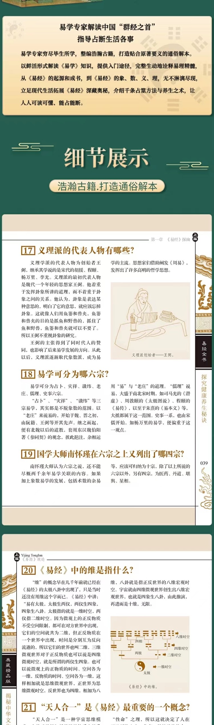 《易经全书》本书《易经全书(典藏精品版)》以问答形式开辟学[易]之路,从《易经》的起源到《易经》的象、数、义、理等,无不淋漓尽现,介绍千条占筮方法与养生之术,教您活占活断,活学活用。