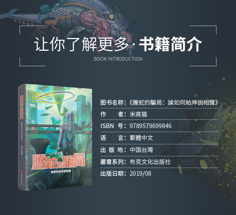 米高猫:《腾蛇的骗局-论如何给神说相声》(上册)全球中文版(繁體版)布克文化出版社——在感受作者天马行空的想象力的同时,学习主人公把烦恼抛之脑后的乐天派精神,拯救处于事业低谷的你,自我调整,重新上路!