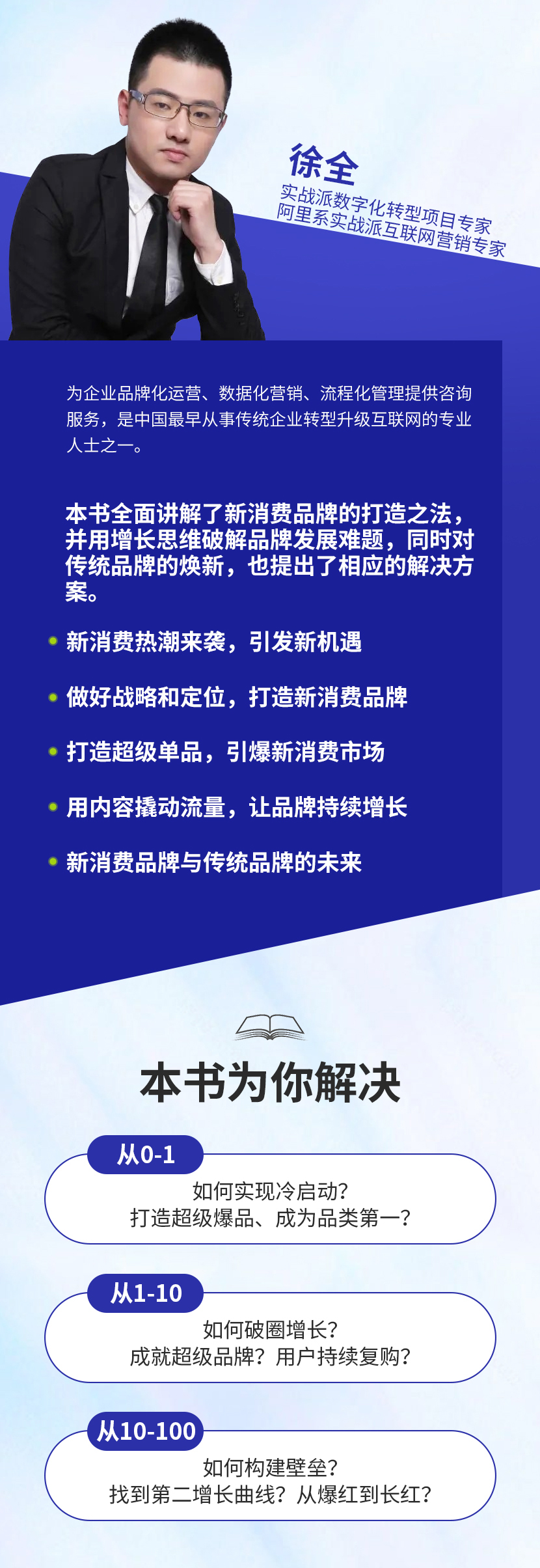 徐全:《直面新消费》——本书全面讲解了新消费品牌的打造之法,并用增长思维破解品牌发展难题,同时对传统品牌的焕新,也提出了相应的解决方案。