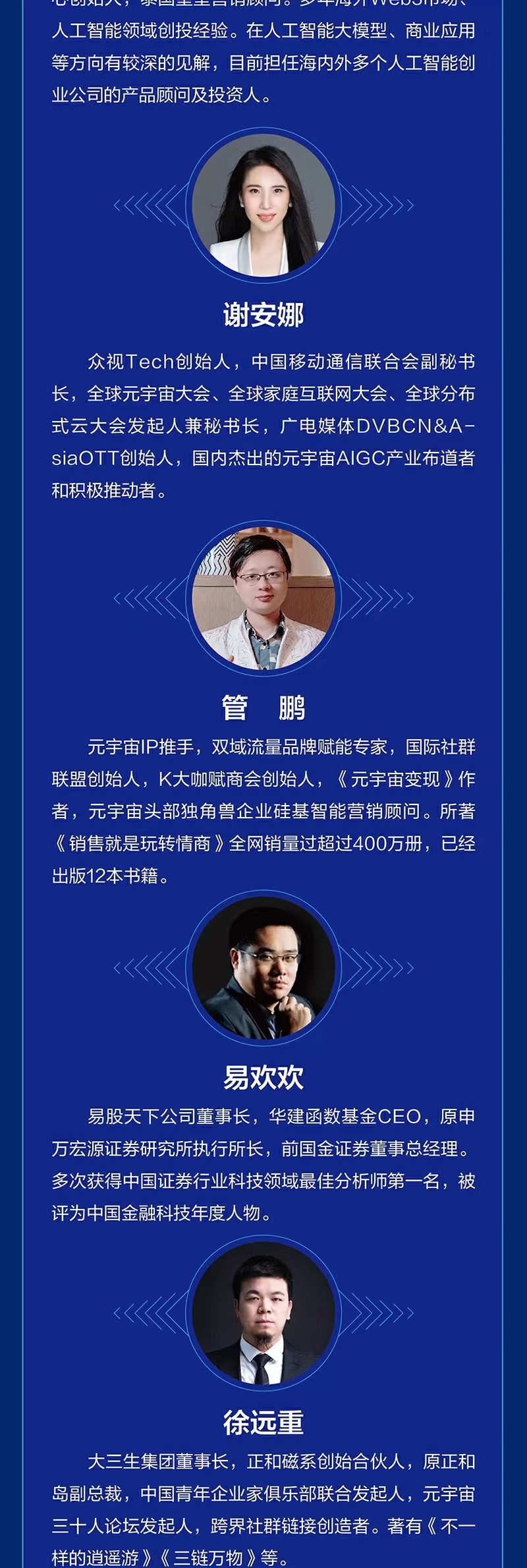 数智中国科技周·全球元宇宙大会总策划兼秘书长;中国移动通信联合会执行秘书长;众视Tech创始人