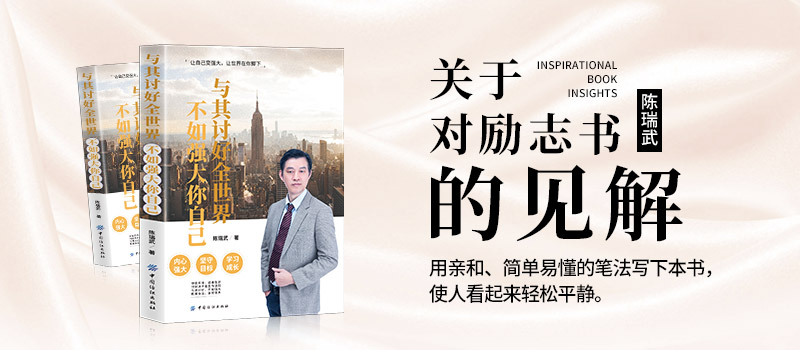 陈瑞武:《与其讨好全世界,不如强大你自己》现代社会发展迅速,人们面临的各种压力都越来越大。要想拥有成功的人生,我们只能够从自己的内心出发,让自己成为内心强大的人,这比讨好全世界都更有用处。