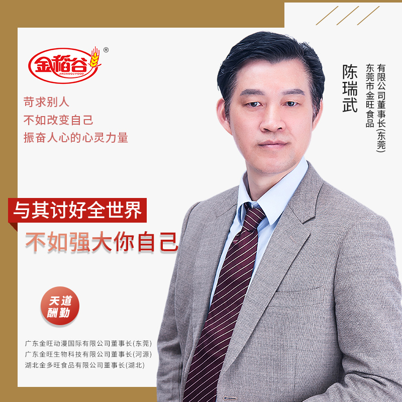 广东金旺动漫国际有限公司董事长;广东金旺生物科技有限公司董事长; 湖北金多旺食品有限公司董事长;国际潮人文化基金会副董事长 ;香港金旺食品国际有限公司总裁