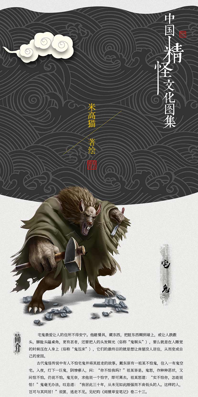 米高猫:《中国精怪文化图集》 ——本书是张公辅先生根据各种版本的鬼怪文字记载绘制而成的,书中鬼怪形态各异,活灵活现,并加注了他们的来历、特征、生性喜好