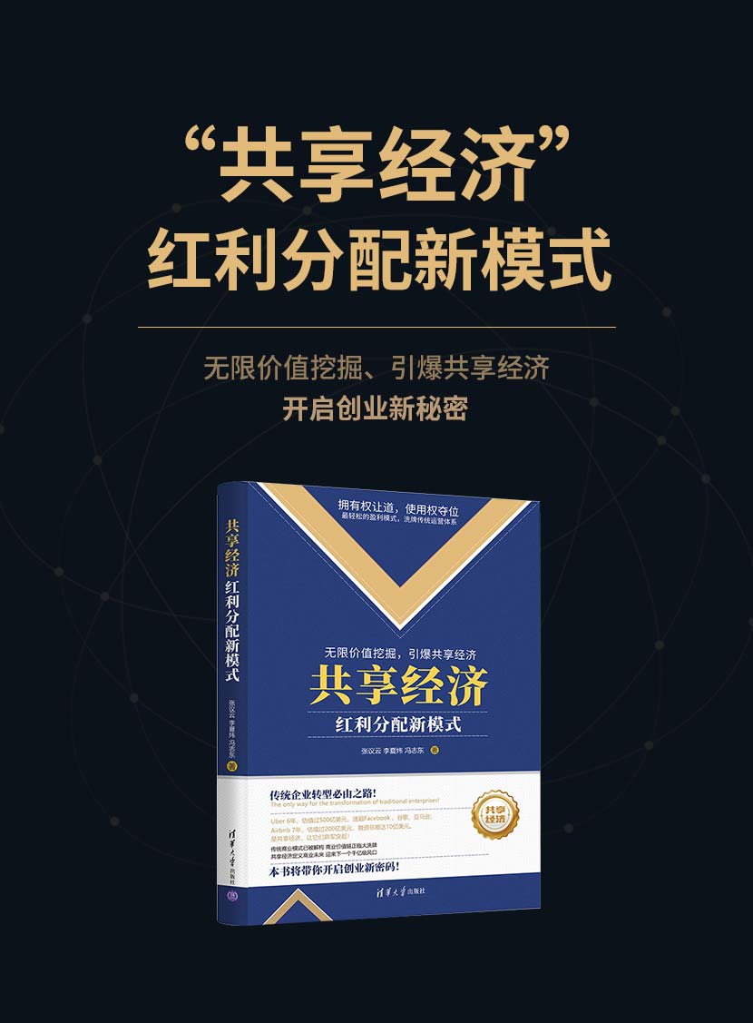 张逸云:《共享经济:红利分配新模式》本书介绍了共享经济的定义、盈利模式,以及具有代表意义的共享平台,如共享WiFi、共享资金、共享工作平台等。