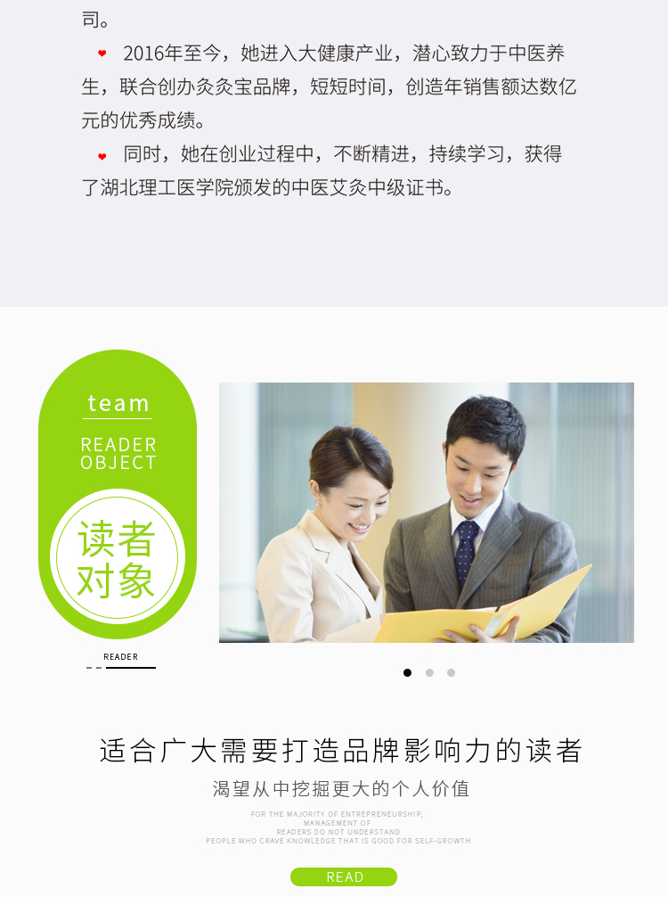 艾侠品牌联合创始人;艾侠传蕲商学院院长; 艾侠灸灸宝品牌联合创始人;深圳花瓣互动创始人; 微商操盘手;微营销讲师;中医健康讲师;
