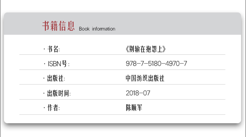 陈顺军:《别输在抱怨上》人们遇到困难和挫折之后不要怨天尤人、怨声载道,而要多反思自己,怀着感恩的心态,换个角度看问题,世界将会很不一样。