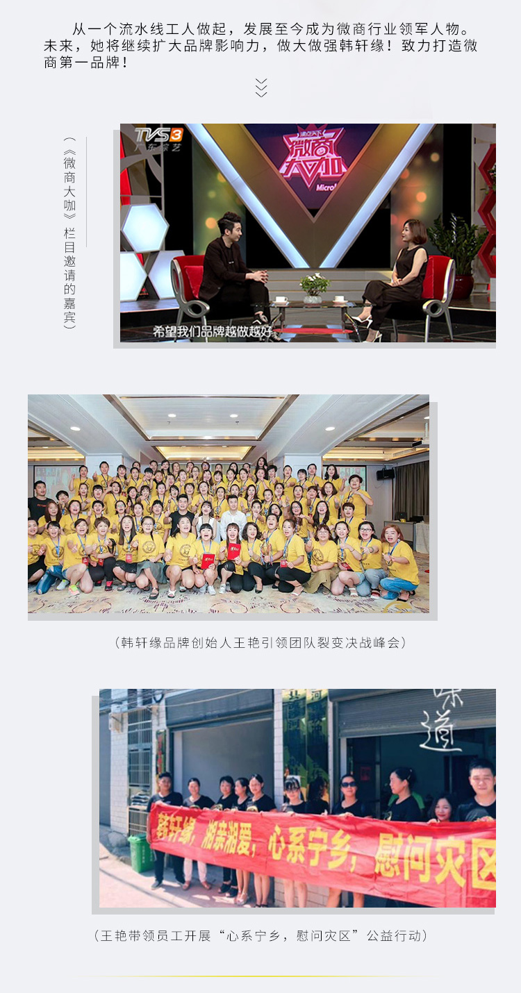 韩轩缘品牌创始人;韩轩缘商学院总构架师;微商春晚,微商节联合发起人;微商领袖栏目特邀嘉宾;微商大咖特邀嘉宾;玩美咖时尚栏目特邀嘉宾;