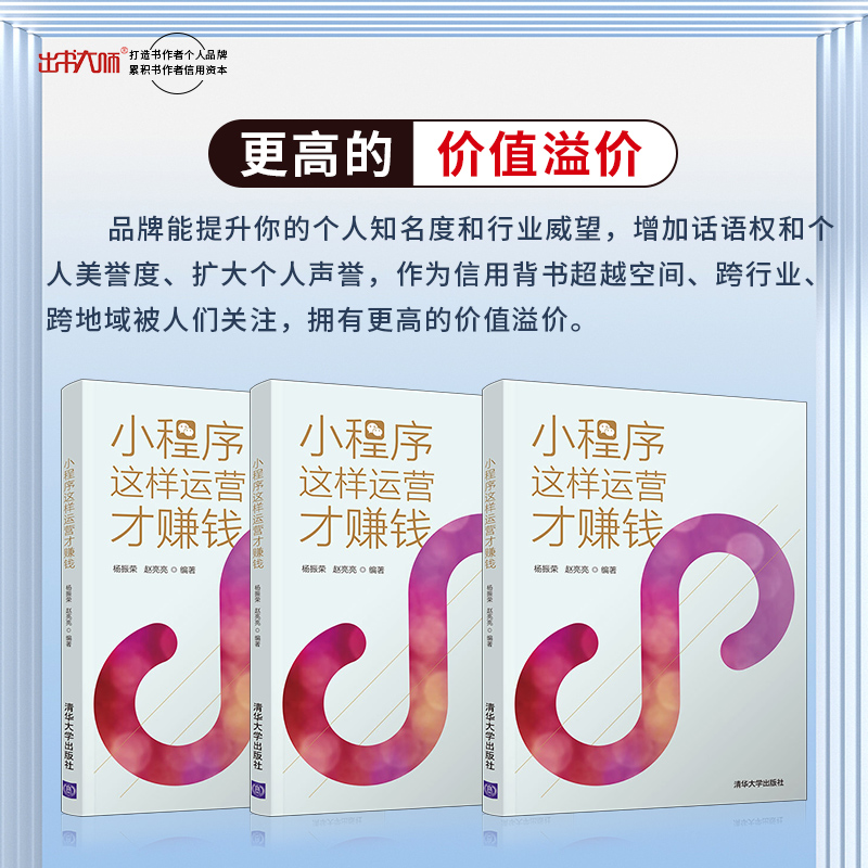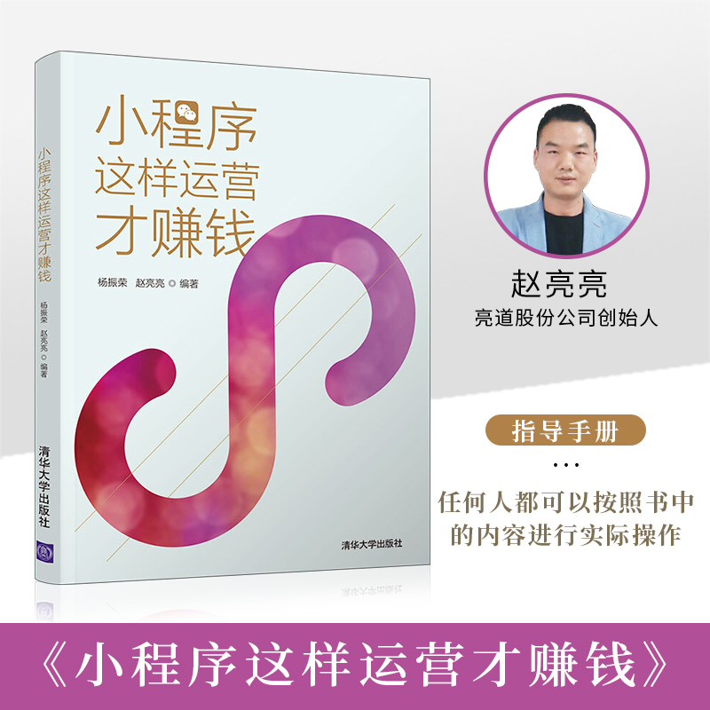 赵亮亮:《小程序这样运营才赚钱》:本书从概述、定位、顶层规划、注册开发以及具体运营技巧策略等多个方面入手,全面展开阐述与剖析,力图给读者一个更加详细、有深度的关于微信小程序的认知,明白微信小程序之于自己企业的作用与价值,以及如何进行结合与运营,从基本关于小程序的介绍开始,到定位、顶层设计规划,再到具体的注册开发与运营技巧,环环相扣,步步递进,完全是一本指导手册,任何人都可以按照书中的内容进行实际操作。