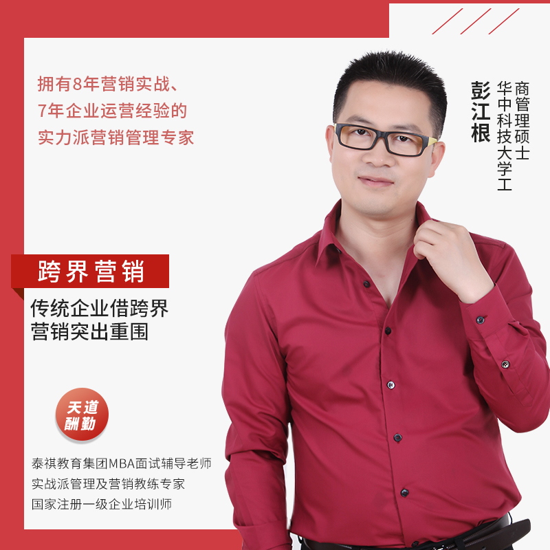 畅销书《跨界营销》作者; 电影《正正的世界》策划人之一; 华中科技大学工商管理硕士; 泰祺教育集团MBA面试辅导老师; 实战派管理及营销教练专家; 国家注册一级企业培训师;