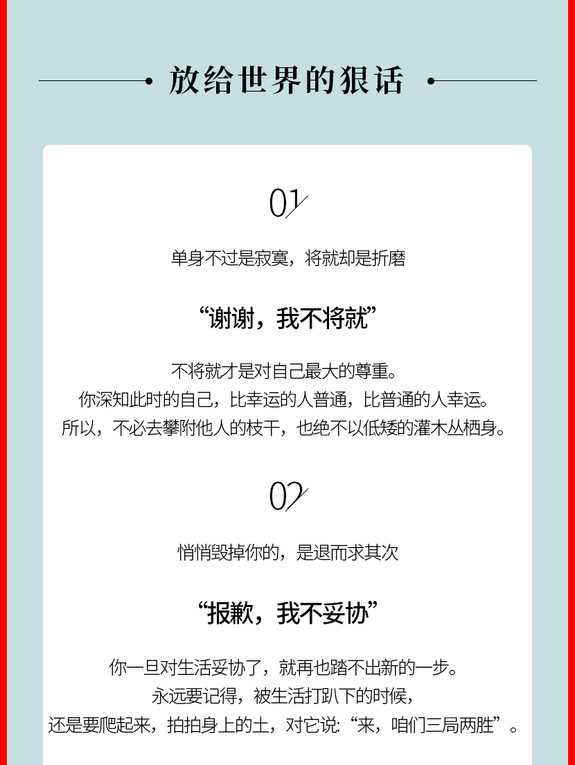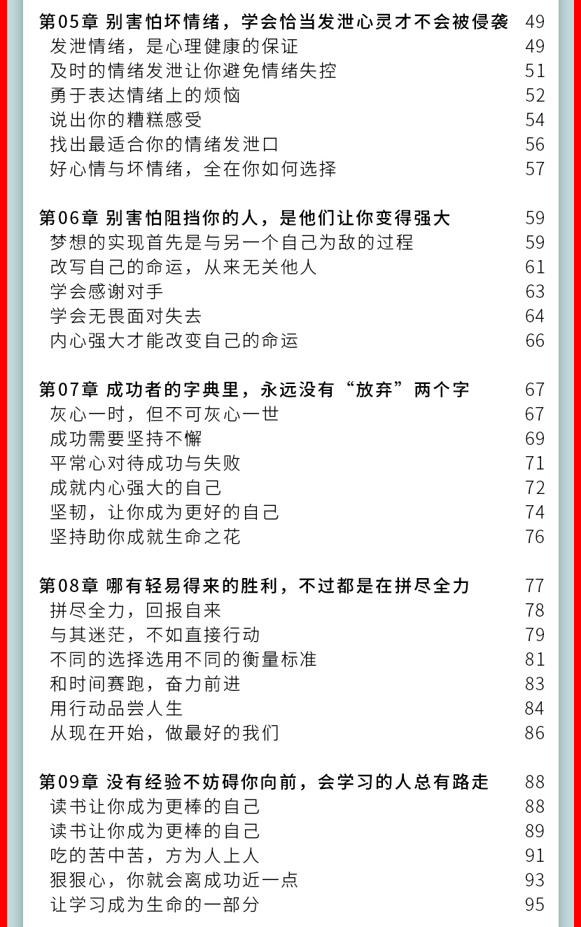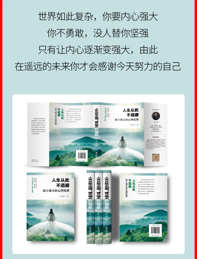 《人生从此不逃避:建立强大的心理优势》人生之旅,活着并不容易,所以我们忙着不断追求物质利益的时候,不要忘了停下匆匆的脚步,抽出时间修心,不要让这烦琐芜杂的生活堵住我们的心灵之泉。