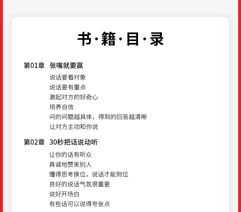 《张嘴就要赢》不管是工作、学习还是生活,那些会说话的人,总是能更直接地将信息传达给对方,能更有效地解决问题,也能更愉快地与他人合作……而这些,在重视效率和合作的当代社会,都是很好重要的。