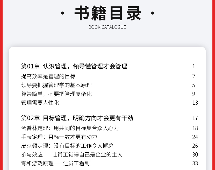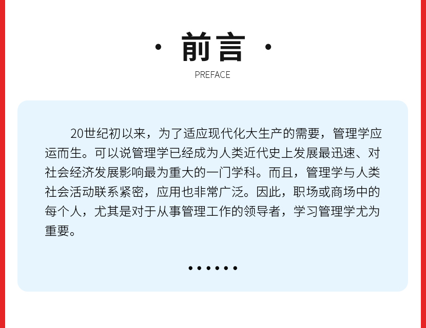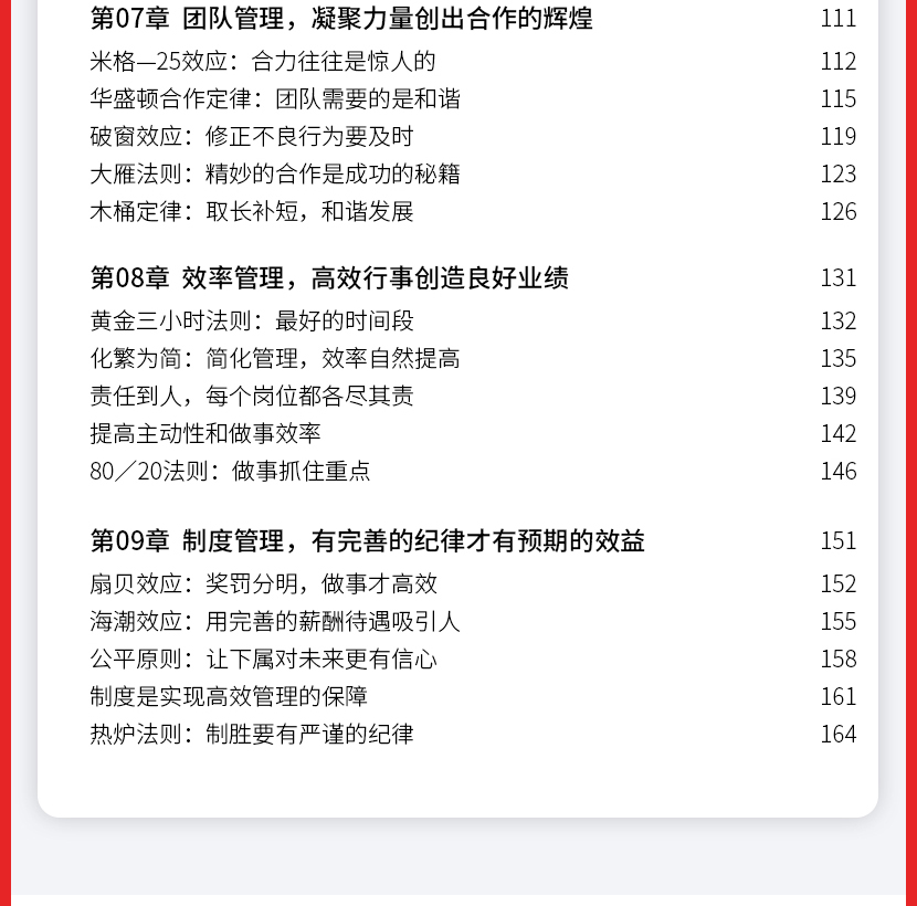 《领导力法则》本书从的日常管理工作开始,为您阐述了管理学的一些基本原理,并结合各种实例,教会如何将这些技巧巧妙运用到管理中,帮助高效地带领团队。