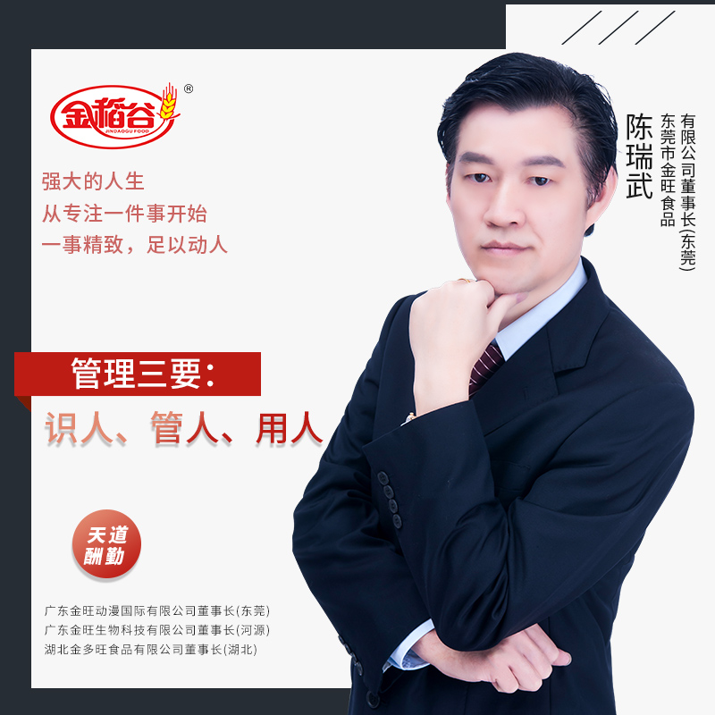 广东金旺动漫国际有限公司董事长;广东金旺生物科技有限公司董事长; 湖北金多旺食品有限公司董事长;国际潮人文化基金会副董事长 ;香港金旺食品国际有限公司总裁