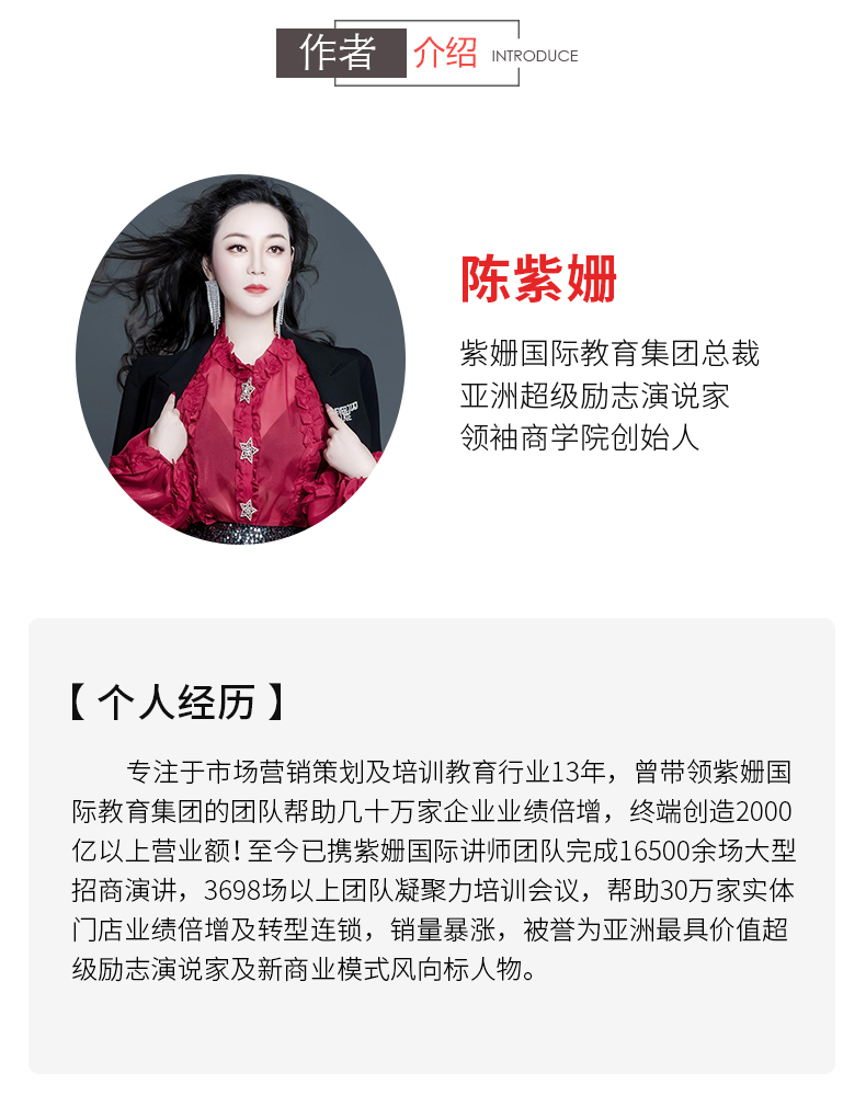 紫姗国际教育集团总裁; 亚洲超级励志演说家;紫姗商学创始人;紫姗创客会发起人;领袖商学院创始人;