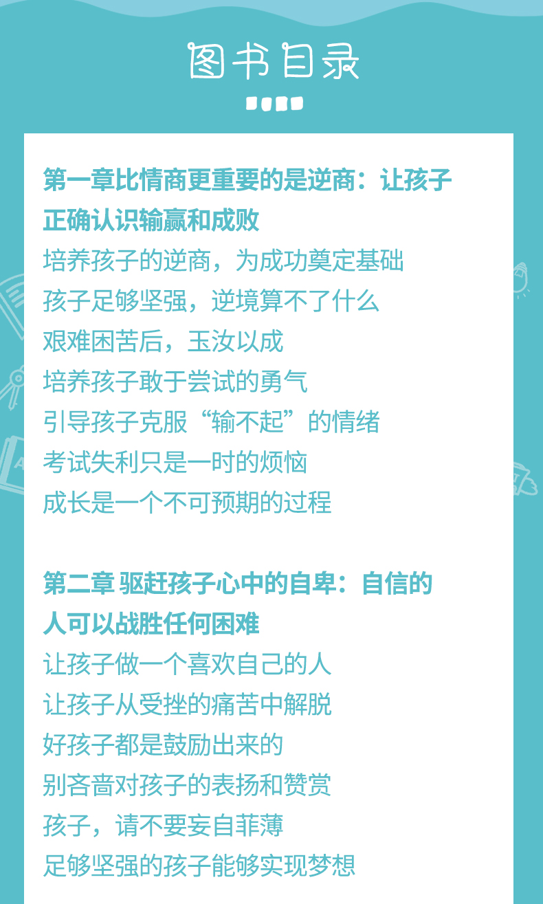 李萍 : 《儿童逆商培养课》——帮助孩子脚踏挫折步入人生高峰适度摩擦走出生活困境,书中包含了高自我效能感培养+正确归因训练t积极应对建议+反思技巧指导。