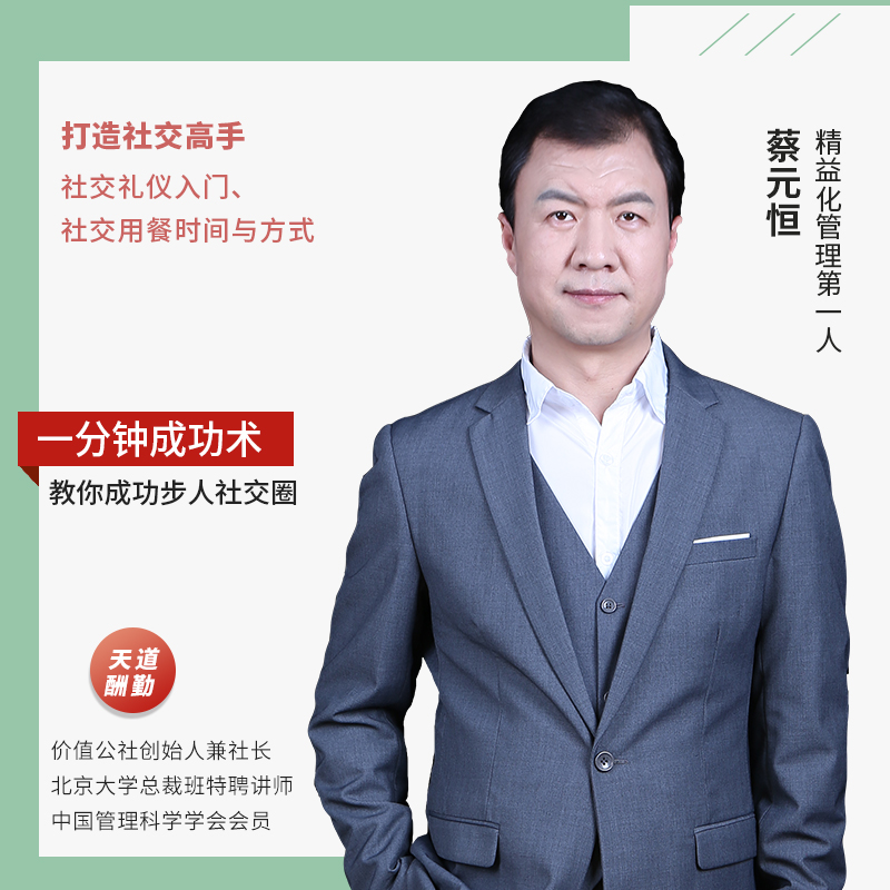 蔡元恒 ,精益化管理第一人;价值公社创始人兼社长;北京大学总裁班特聘讲师;组织管理、营销、文化、创新实践专家;中国管理科学学会会员;中国管理研究国际学会会员;中国战略与管理研究会会员;北京企业管理咨询协会副会长;中国新一代管理咨询与培训领军人物,具有战略管理、营销管理、组织管理、绩效管理等丰富的实战经验。拥有15年集团公司及上市公司高层管理经验,曾带领团队在九个月时间实现销售业绩从零到亿的突破,被称为行业营销神话!