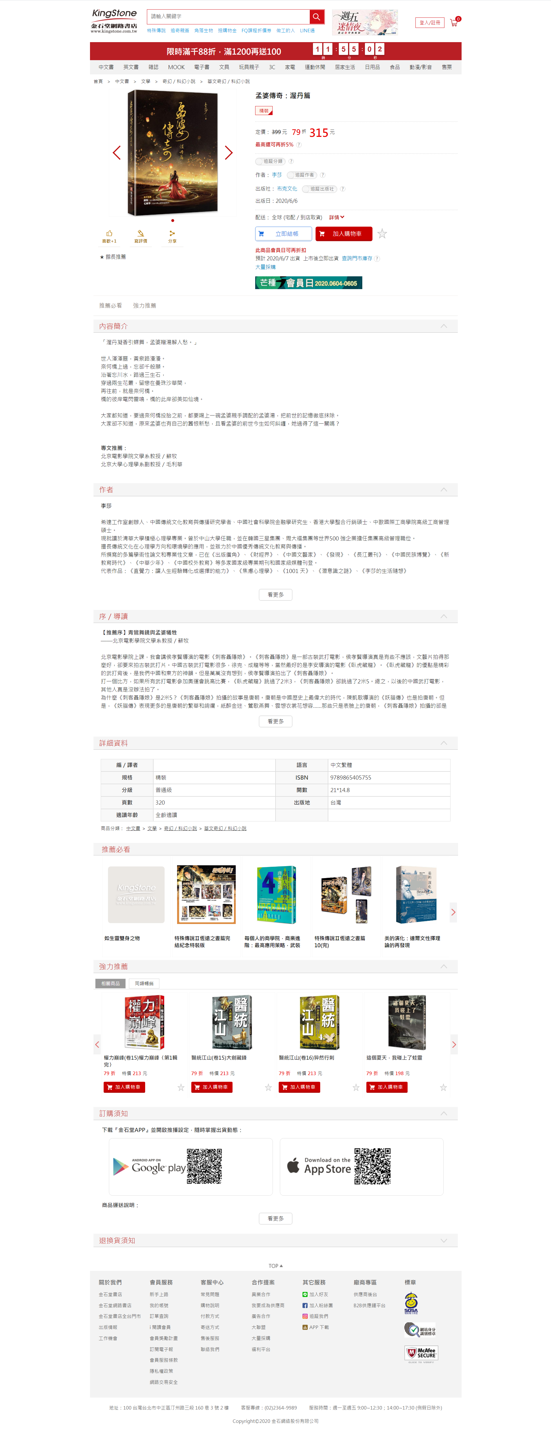 李莎:李莎《孟婆渥丹台湾版》网店页截图1