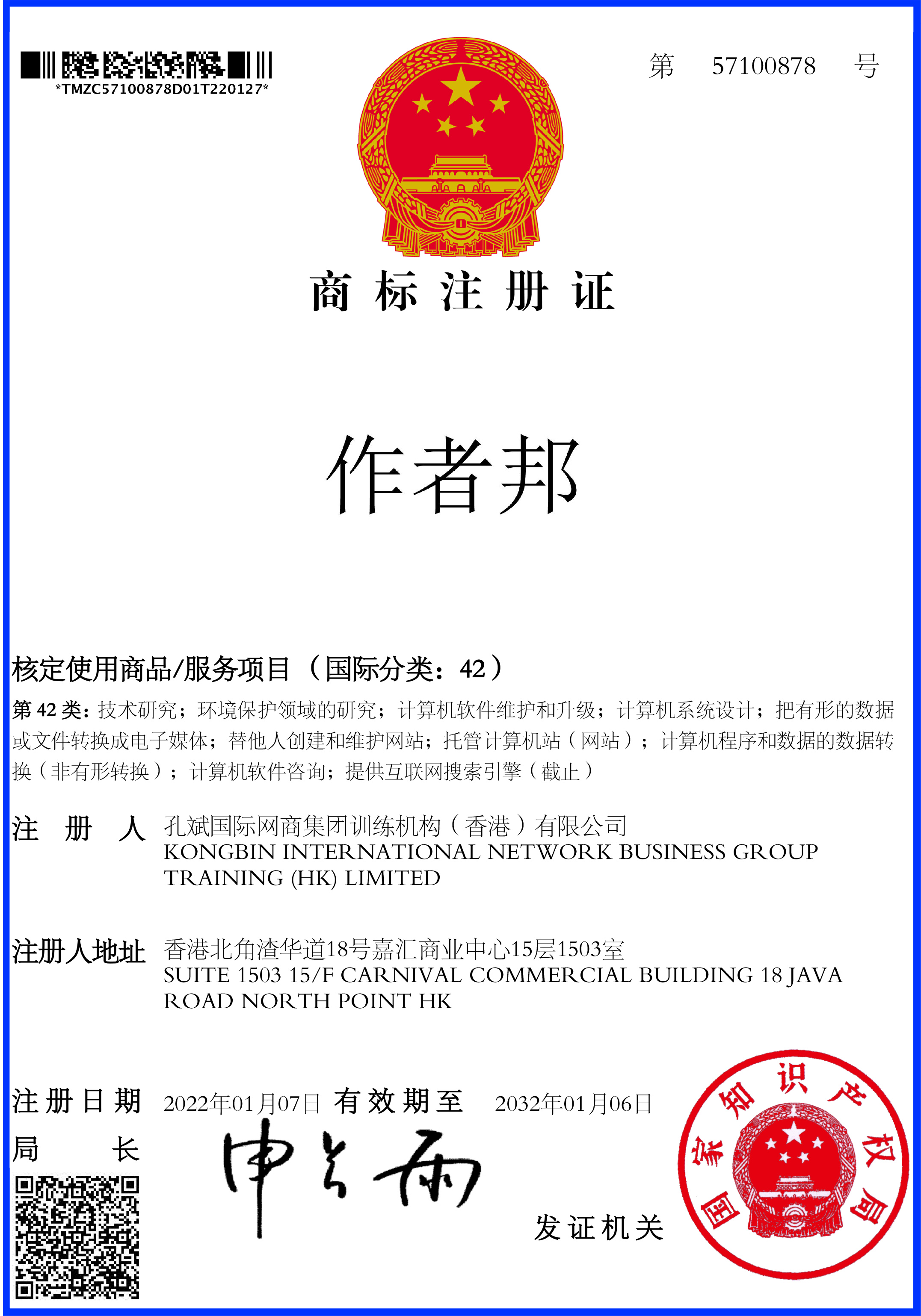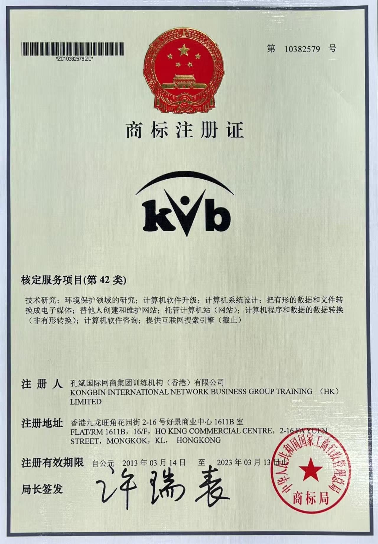 孔斌:孔斌国际商标注册证书:核定服务项目(42类)