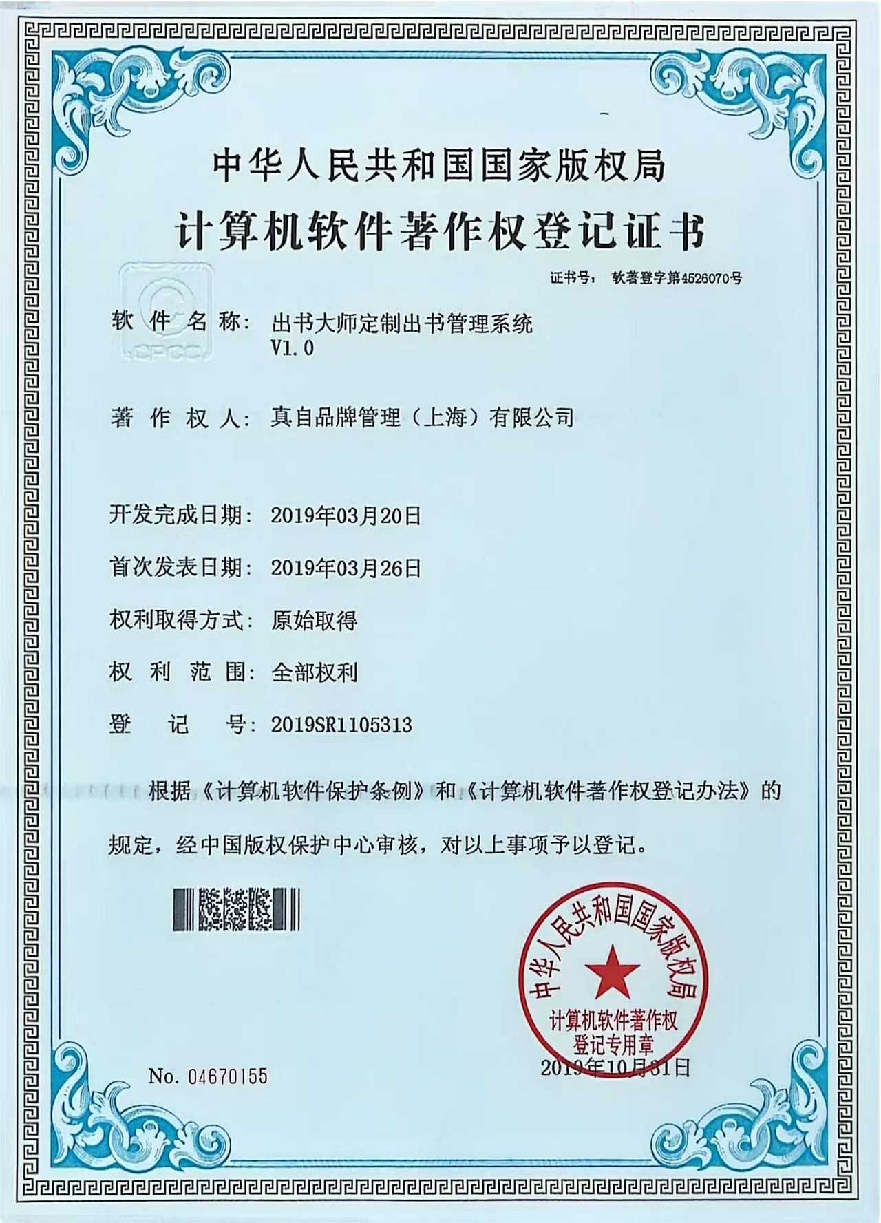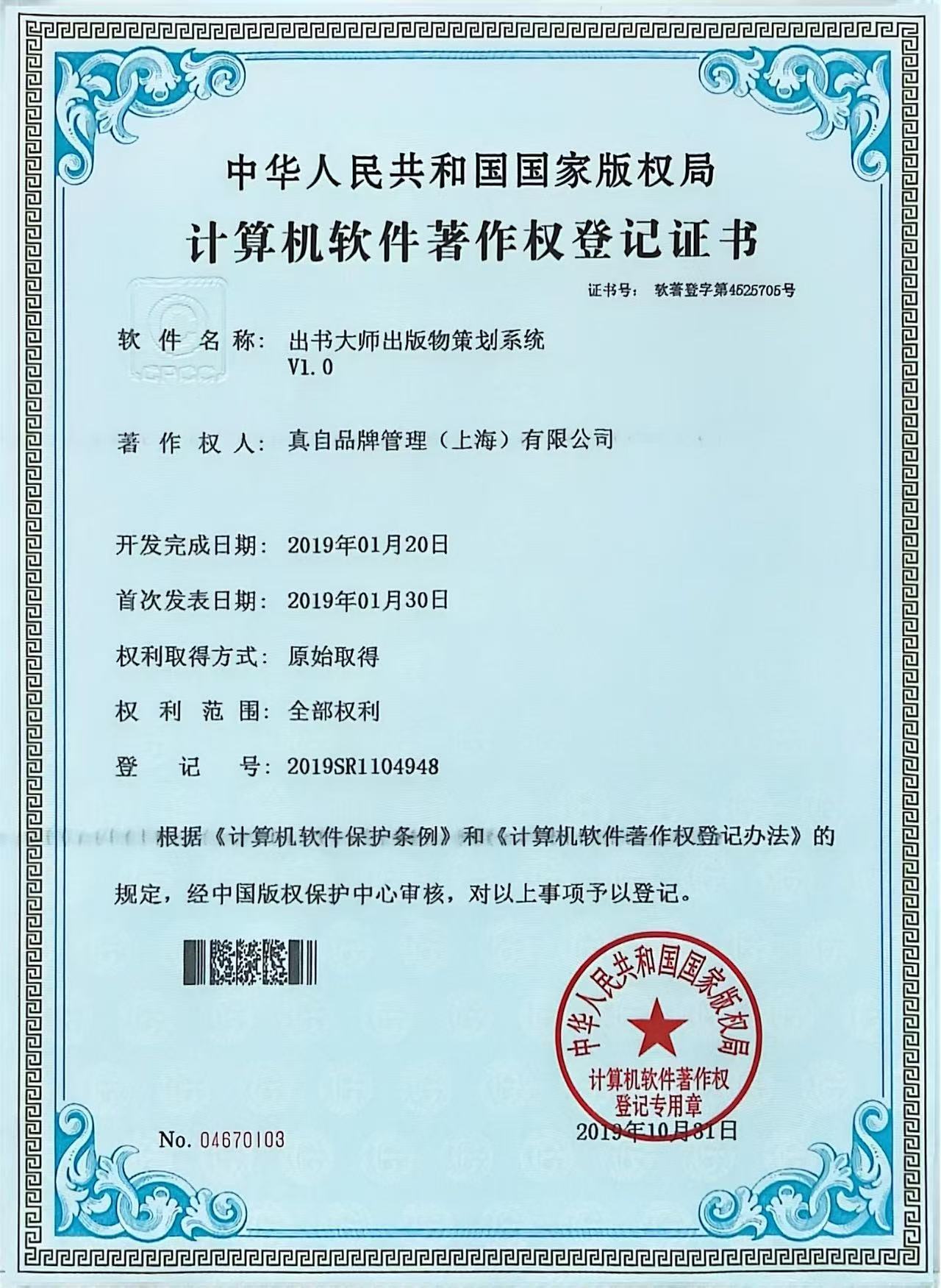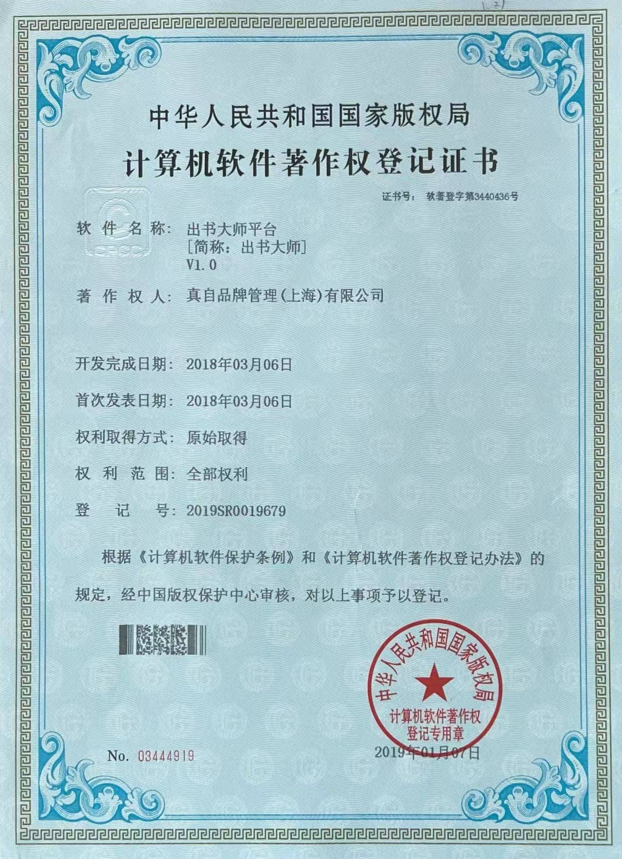 孔斌:出书大师平台V1.0·计算机软件著作权登记证书