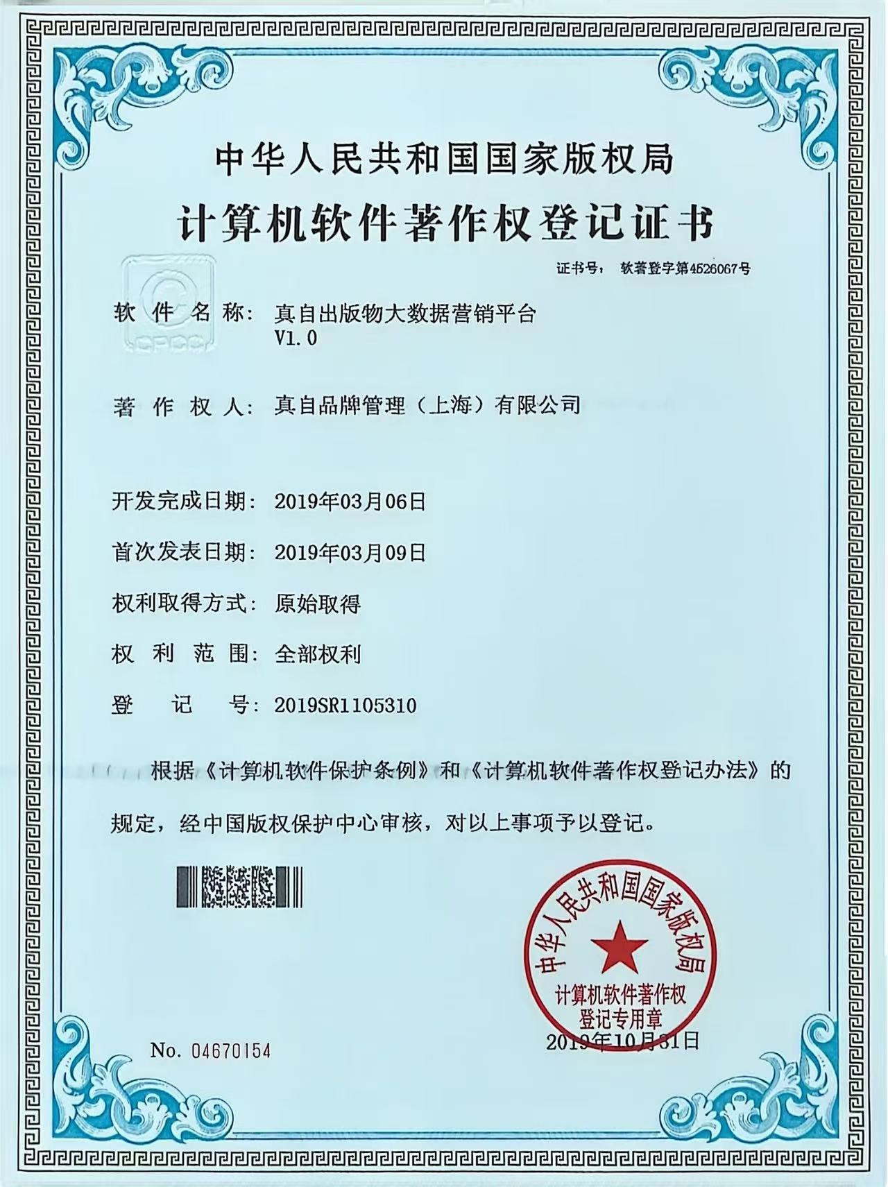 孔斌:真自出版物大数据营销平台·计算机软件著作权登记证书