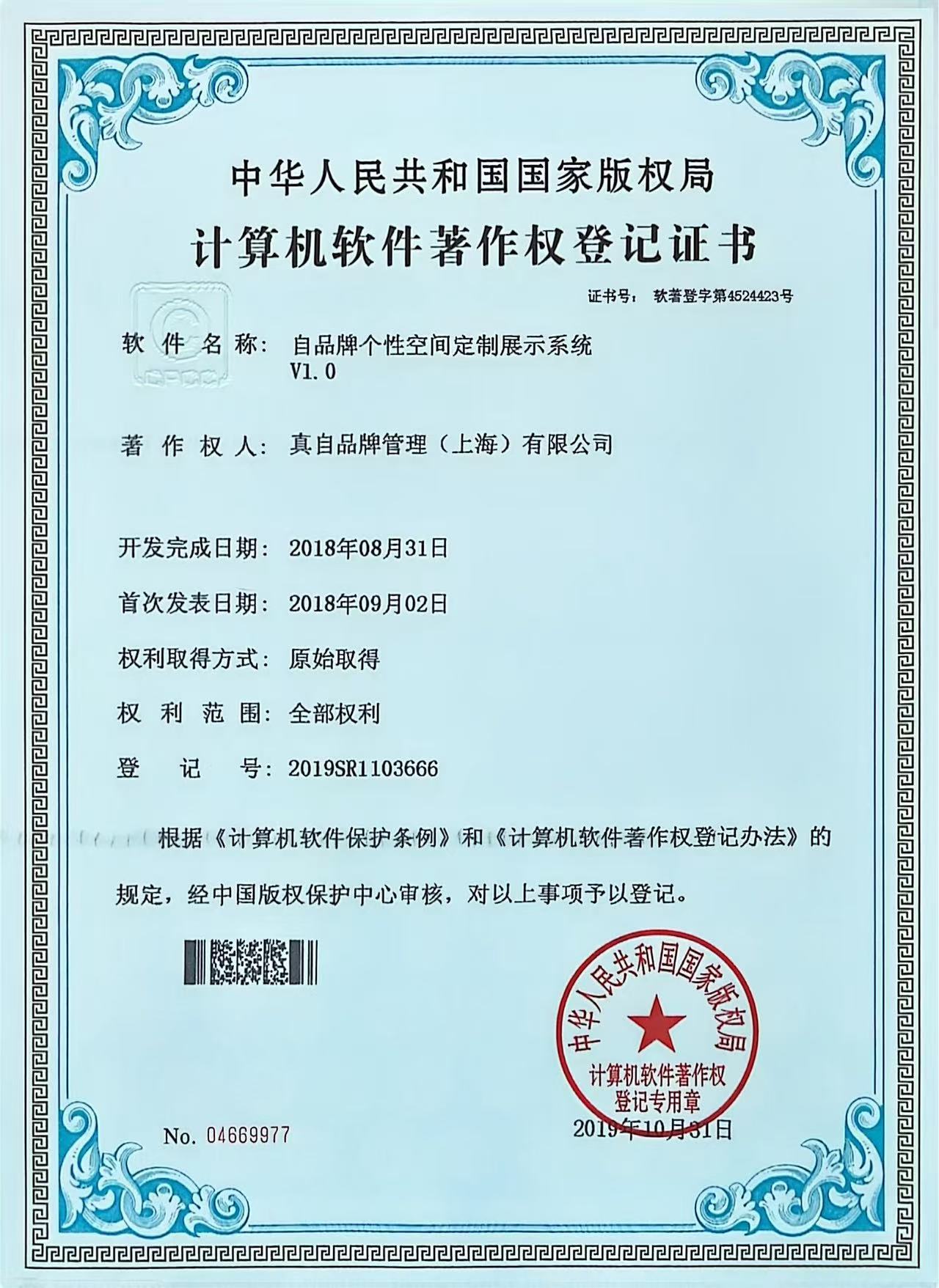 孔斌:自品牌个性空间定制系统V1.0·计算机软件著作权登记证书